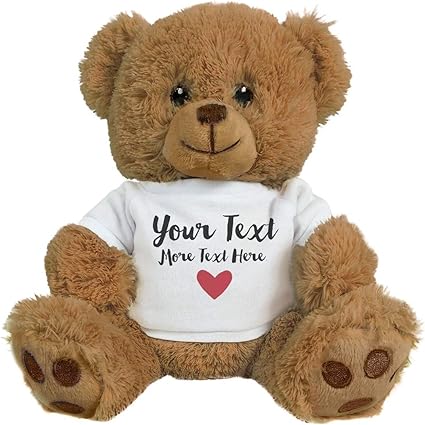 Amazon Com Oso De Peluche Personalizado Con Texto Personalizado Personalizado 8 Pulgadas Oso De Peluche Marron Dia De San Valentin Camisa Blanca De Animal Relleno Yt Toys Games