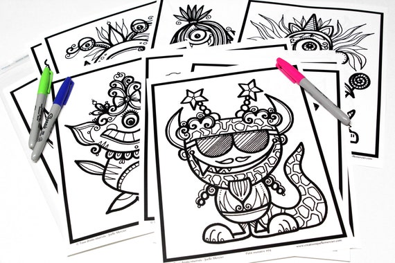 Lote De 30 Dibujos Para Colorear Pequenos Monstruos Formato Etsy