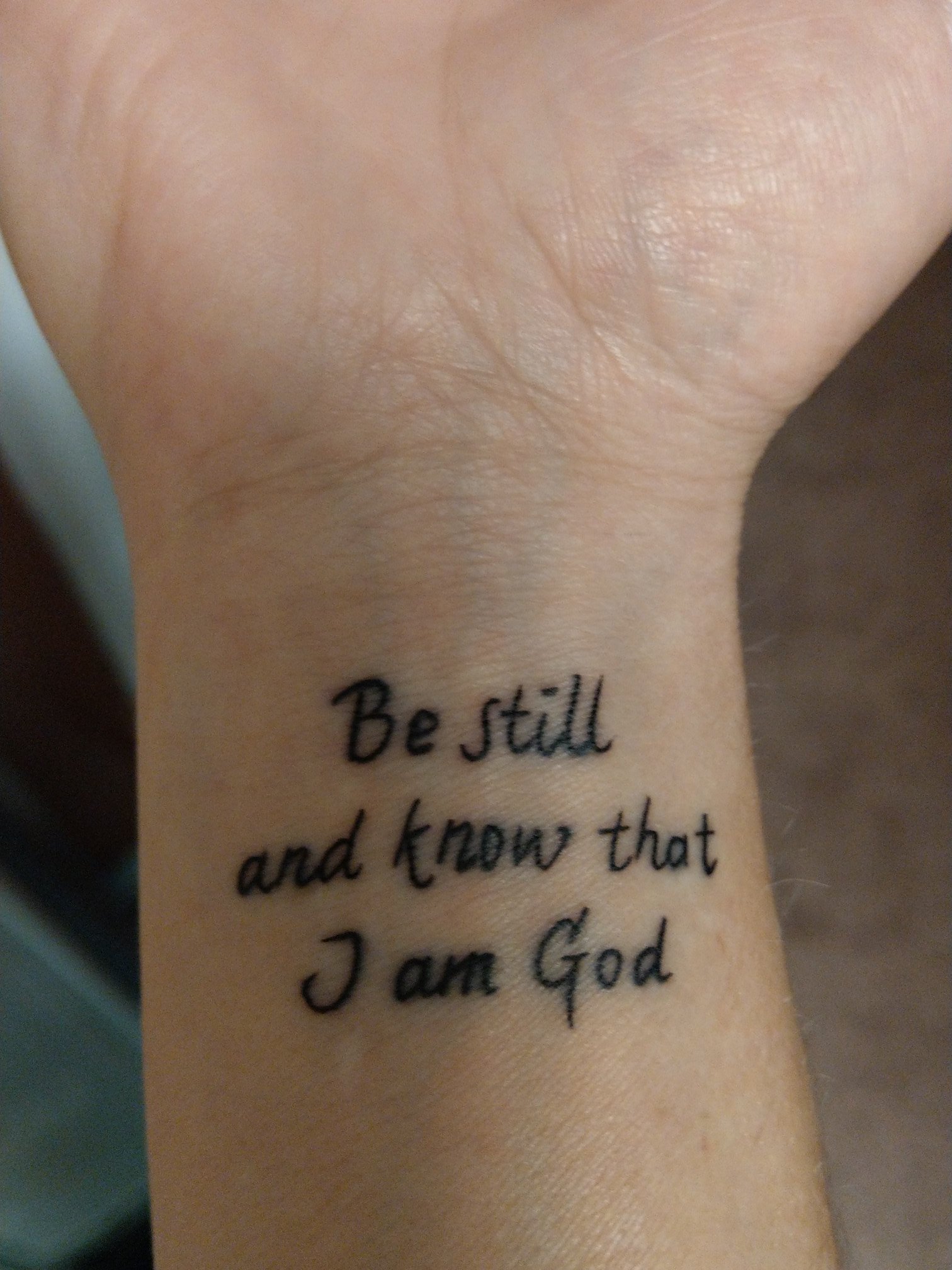 Our "Be still and know that I am God" Manifestation Tattoo is a reminder that you don't need to be in control Get still Know that you are taken care of and that you are LOVED Size 3" x 1" Save % with purchase of a Power Pack/10 of our "Be still and know that I am God" Temporary Tattoo!. Verse 10 Be still, and know that I am God (comp Exodus 1413, 14;. Praying for you as you walk through the storm God’s got you!.