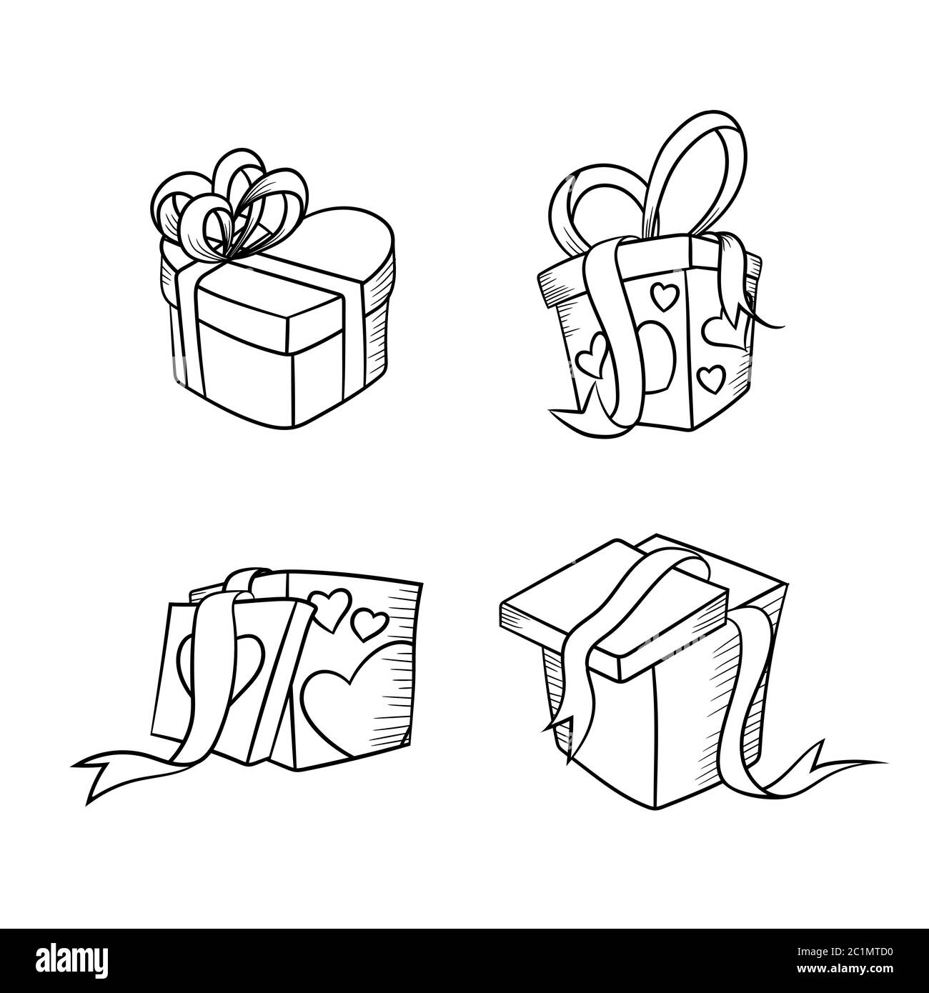 Dibujo De Mano Icono De Una Caja De Regalo Coleccion De Regalos Con Bordes De Dibujos Animados En Blanco Y Negro Caja De Regalo De Recursos Graficos Imagen Vector De Stock