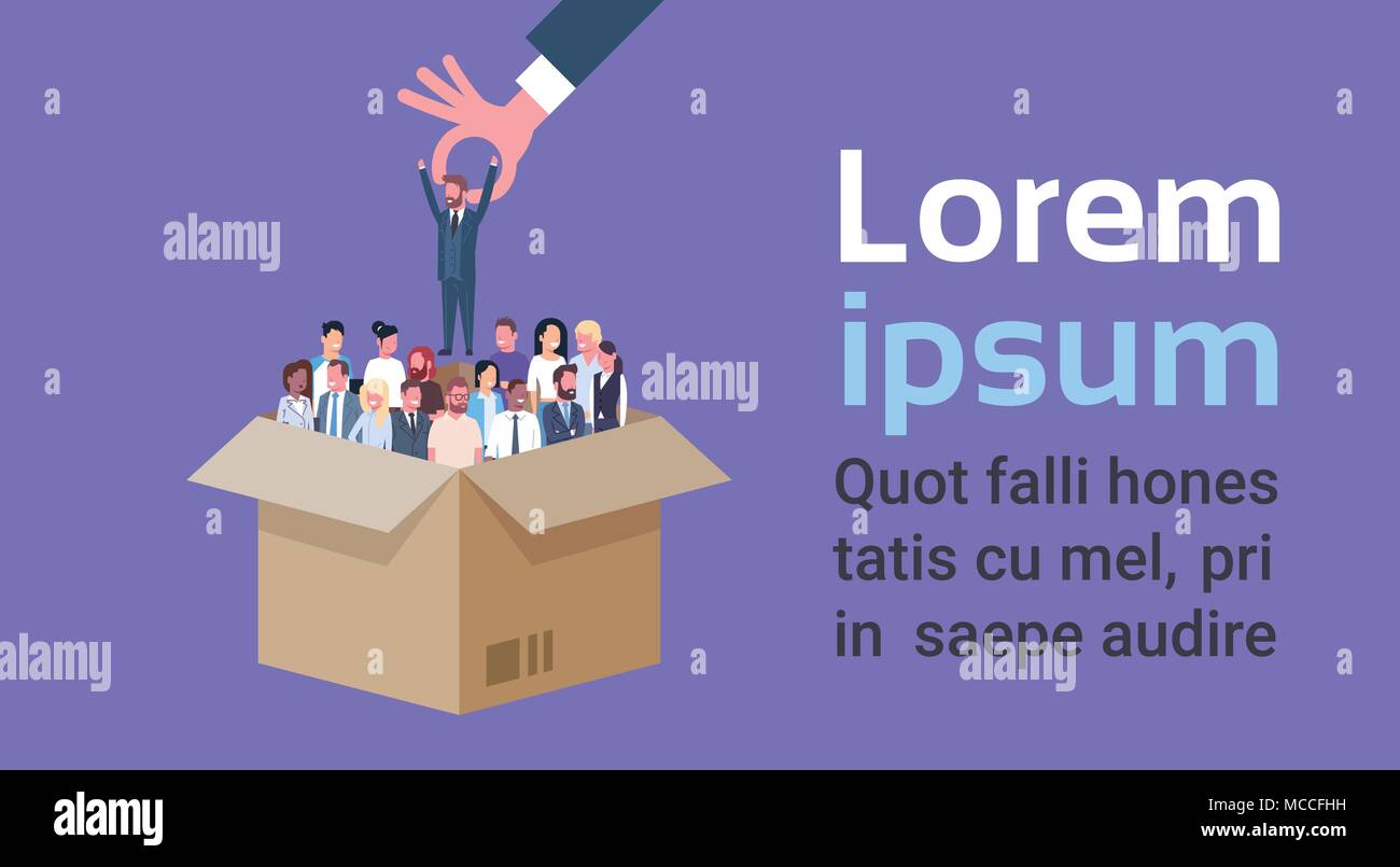 Contratacion De Mano Hombre De Recogida Desde La Caja De La Gente De Negocios Y Recursos Humanos Vacante Concepto Imagen Vector De Stock Alamy