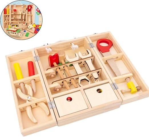 Amazon Com Anonca Toy Construction Toolbox Set Pretend Play Herramientas De Construccion De Recursos De Aprendizaje Nuevos Brotes Fix It Caja De Herramientas De Madera Para Ninos Home Kitchen