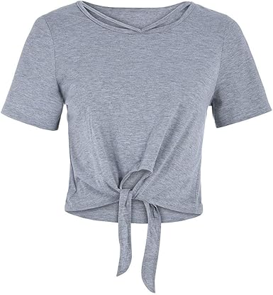 Jurtee Camiseta Para Mujer Nuevo Suave Solid Color Anudado Fuera Del Ombligo Tops Blusas Manga Corta De Verano Amazon Es Ropa Y Accesorios
