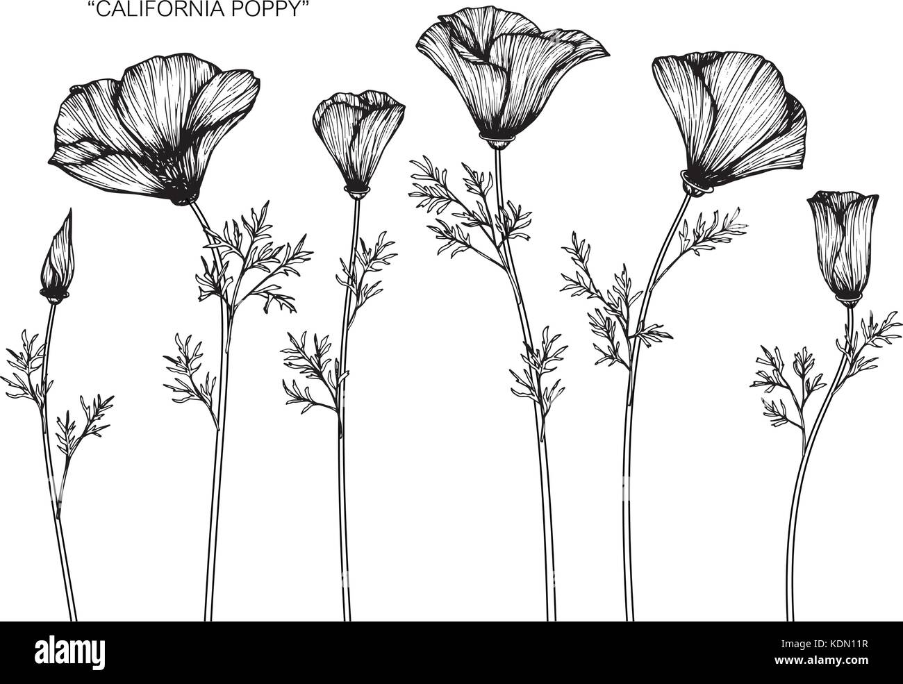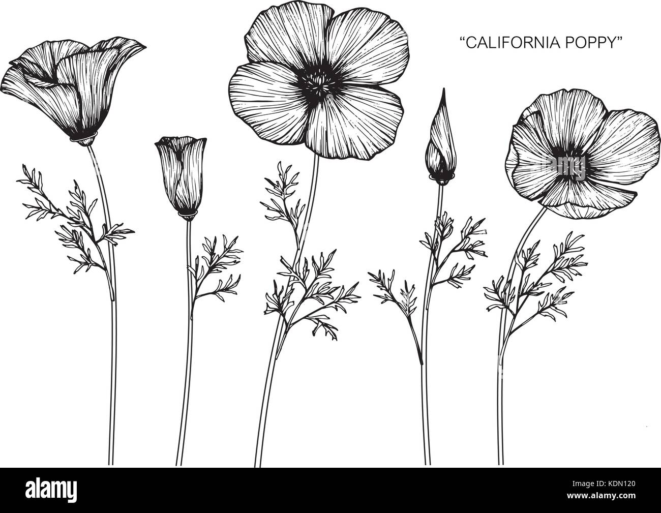 Ilustracion Dibujo Flor Amapola De California Blanco Y Negro Con La Linea Art Imagen Vector De Stock Alamy