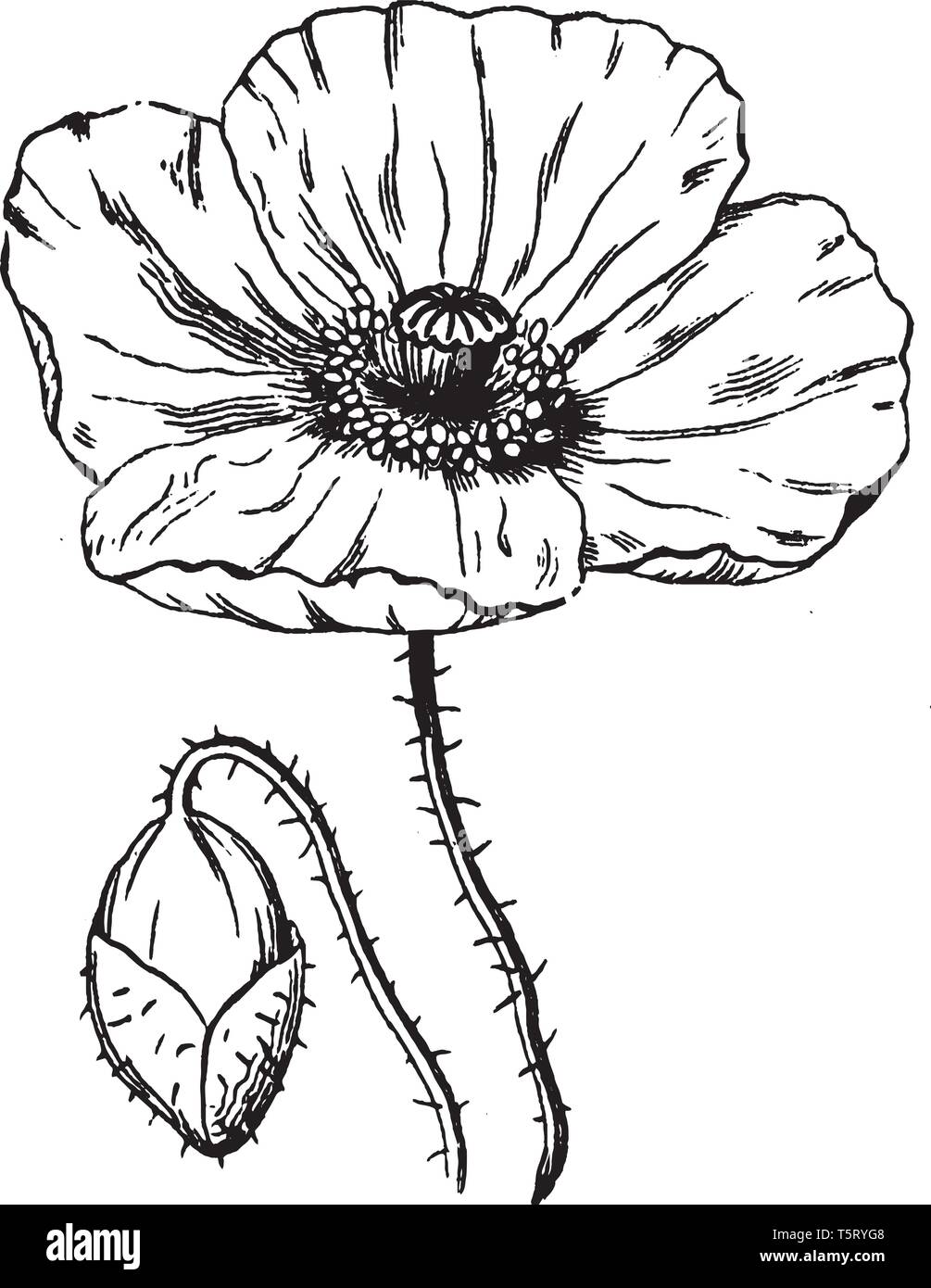 Es Flor De Amapola Y Esta Mostrando La Imagen De La Seccion Completa De La Flor Y La Seccion De Bud Sus Pedicelos Son Espinosas Grabado O Dibujo De Linea Vintage Imagen