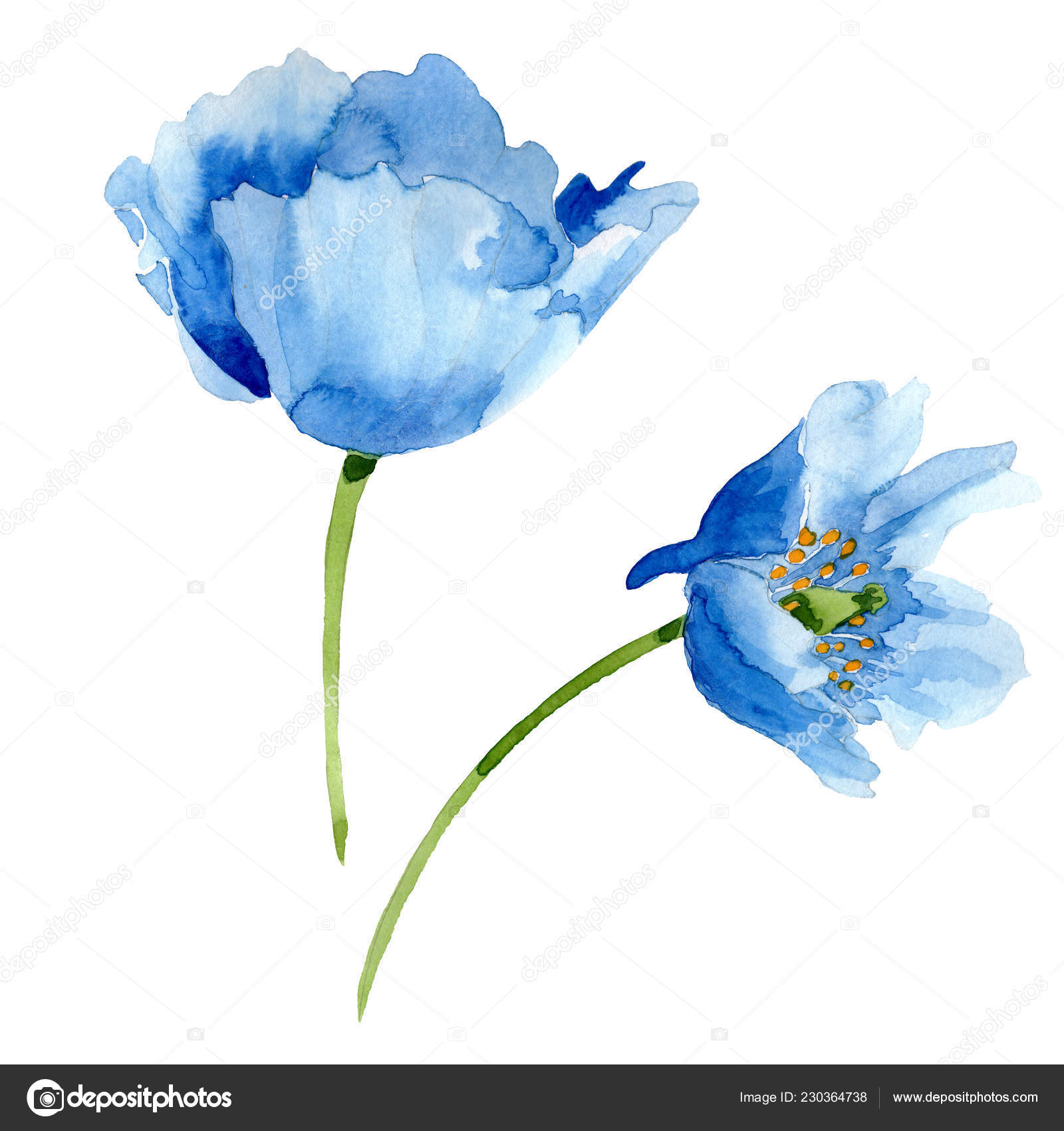 Fotos De Hermosas Flores Amapola Azul Aisladas Blanco Ilustracion Fondo Acuarela Acuarela Imagen De C Andreyanush