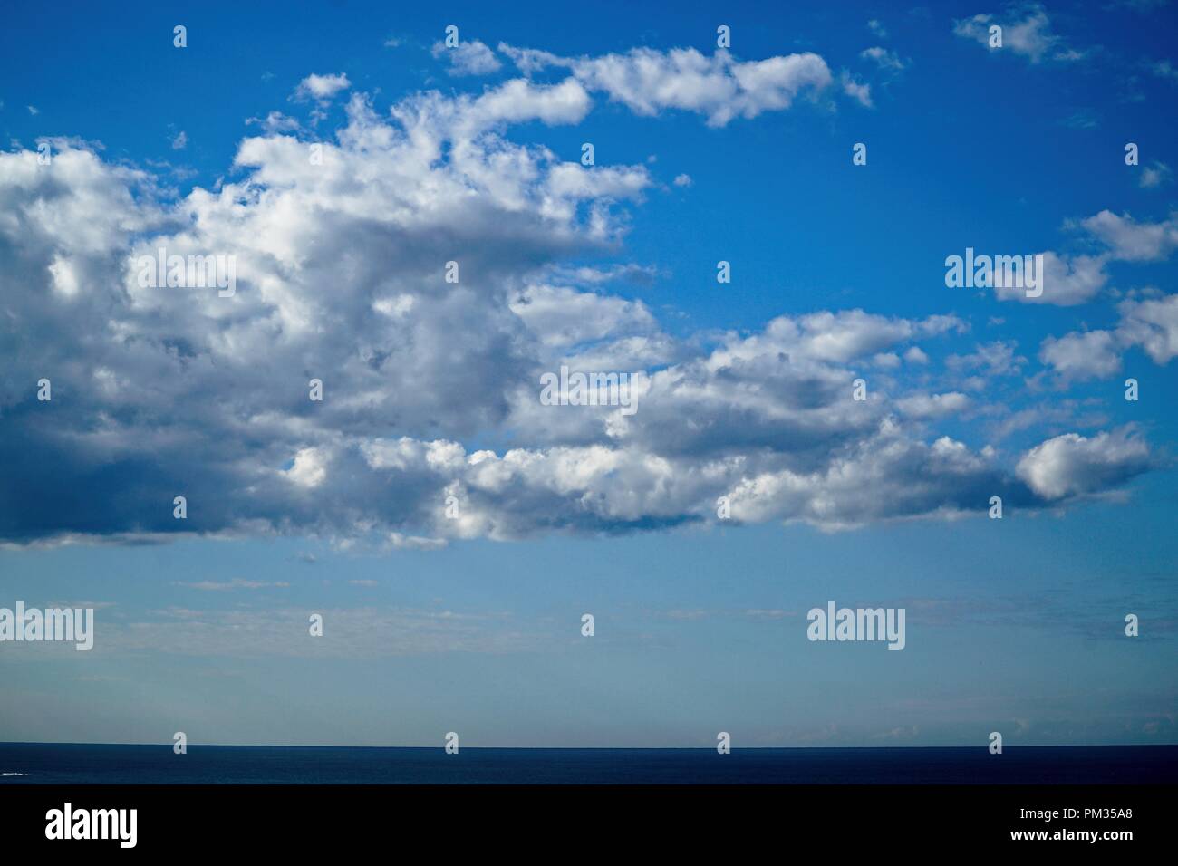 El Cielo Lleno De Nubes Con Manchas De Color Azul Por Encima De Una Delgada Franja De Oceano Azul Profundo Fotografia De Stock Alamy