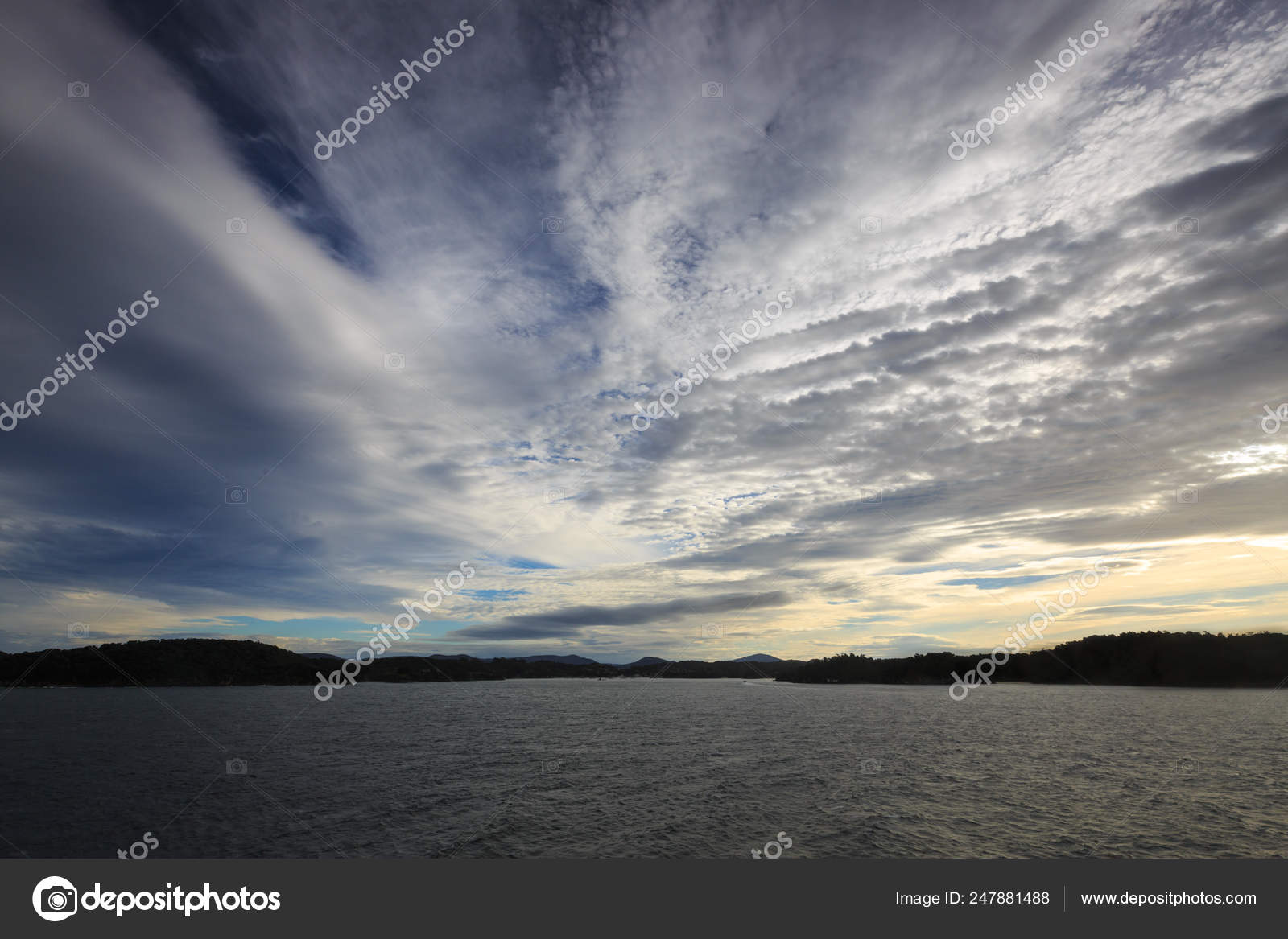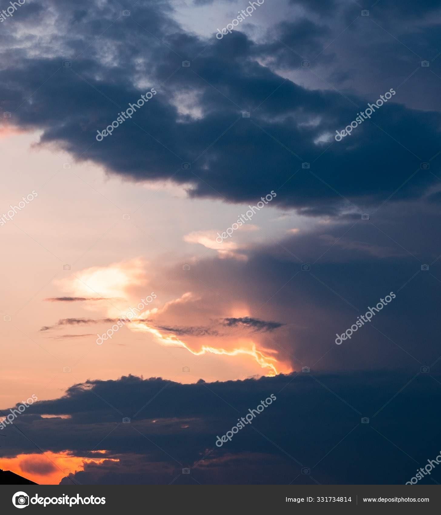 Vista Panoramica Del Cielo Lleno De Nubes De Diferentes Colores Durante La Puesta Del Sol Foto De Stock C Wirestock