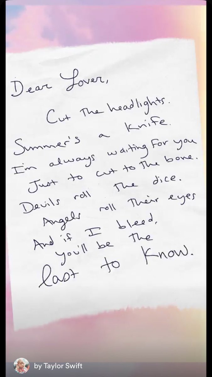 Taylor Swift News Today S Lyrics And Love Letter Has Been Revealed Lovetaylor Cut The Headlights Summer S A Knife I M Always Waiting For You Just To Cut To