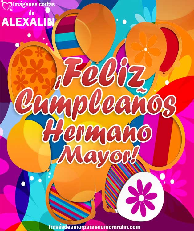 Te amo y te deseo un feliz aniversario Este día es el cumpleaños de un ser fenomenal, a quien valoro y aprecio como a nadie, y con quien tuve la dicha de crecer es el cumpleaños de mi hermana mayor Que Dios te dé vida y salud para que sigas sumando más velas al pastel, y con ellas, más momentos felices en familia. ¡Feliz cumpleaños hermana mayor!. No hay lugar en el que prefiera estar que en tu sombra ¡Feliz cumpleaños a la sombra del hermano mayor del mundo!.