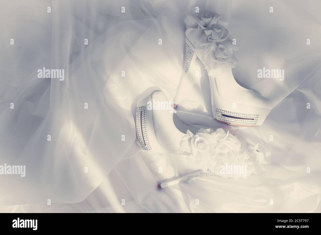Hermosos Zapatos Para Novia En Una Fot Blanca Fotografia De Stock Alamy