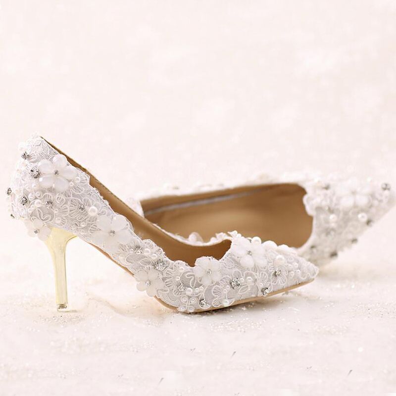 Hermoso Blanco Zapatos De Novia 19 Flor Con Encaje Perla Rhinestone 6 Cm Stilettos Tacones De