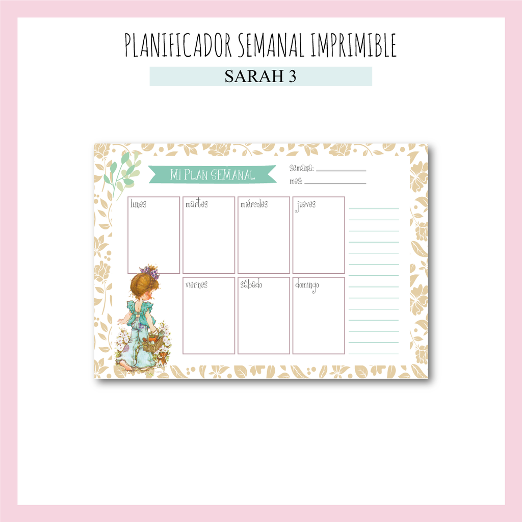 Planificador Semanal Imprimible Sarah 3 Ink Flowers