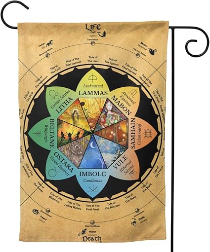 Amazon Com Wicca Calendario Celta Con Diseno De Rueda Del Ano 28 X 40 12 5 X 18 Tamano Grande Para Fiestas Decoracion Exterior Decoracion De Jardin Patio Bandera De Doble Cara Blanco Jardin Y Exteriores