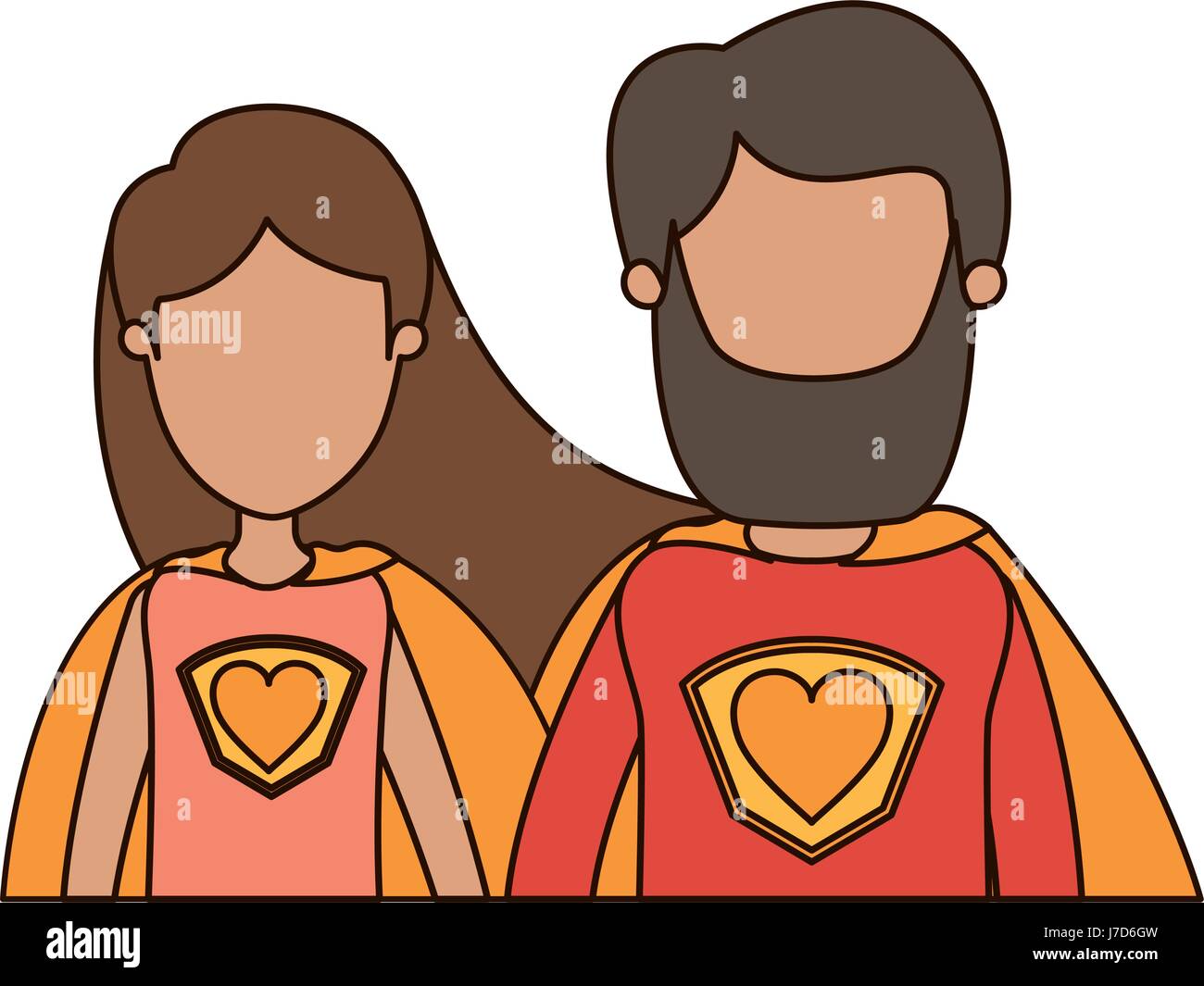 Colorido Caricatura Sin Rostro Pareja De Medio Cuerpo Super Heroe Femenino Y Masculino Con El Simbolo Del Corazon En Uniforme Imagen Vector De Stock Alamy
