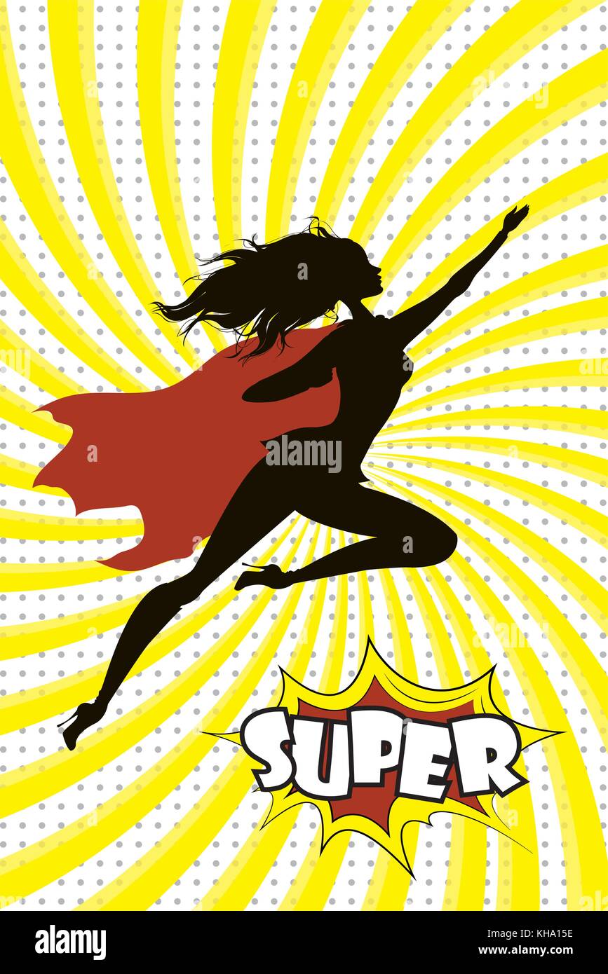 Super Heroe Femenino Silueta Y Texto En Retro Super Comic Pop Imagen Vector De Stock Alamy