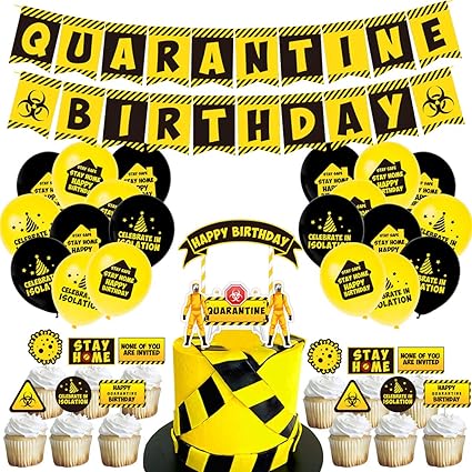 Amazon Com Crzpai Cuarentena Decoraciones De Fiesta De Cumpleanos Feliz Cuarentena Cumpleanos Banner Kit De Globos De Distancia Social Cumpleanos Cupcake Toppers Stay At Home Party Supplies Toys Games