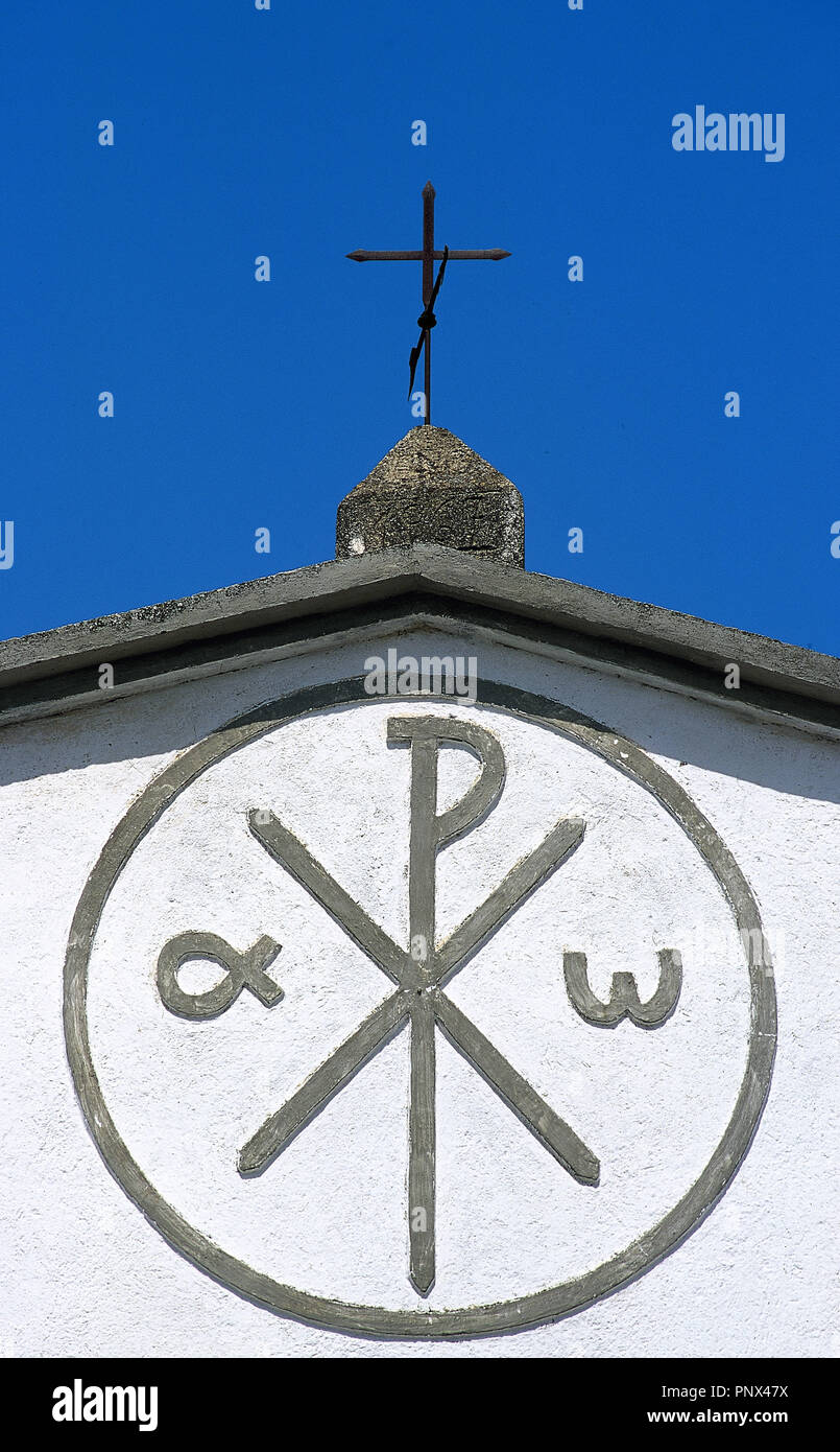 Detalle Del Simbolo Alfa Y Omega Principio Y Fin En La Fachada De La Ermita De San Roque Del Siglo Xvi Mirandilla Provincia De Badajoz Extremadura Espana Stock Photo Alamy
