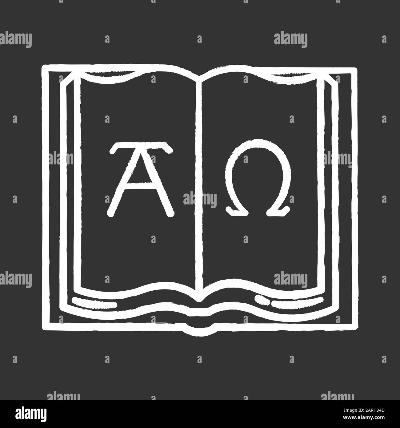 Icono De Tiza Alfa Y Omega Principio Y Fin Libro Abierto Con Letras Del Alfabeto Griego Libro De Apocalipsis De Juan Simbolos Cristianos De Dios Infinito Imagen Vector De Stock Alamy