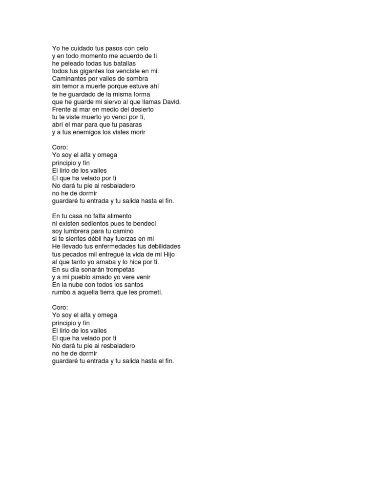 Siendo que, su asociación va directamente con lo que se relaciona al principio y al fin, por lo tanto, va a relacionarse como una representación de la eternidad de Dios. Pero si espero desespero, si quiero ver el partido entero. Yo quiero que gobiernes mi vida Me doy en sacrificio a Ti Yo quiero que Tú ordenes mi caminar Y que siempre viva en Tu voluntad.