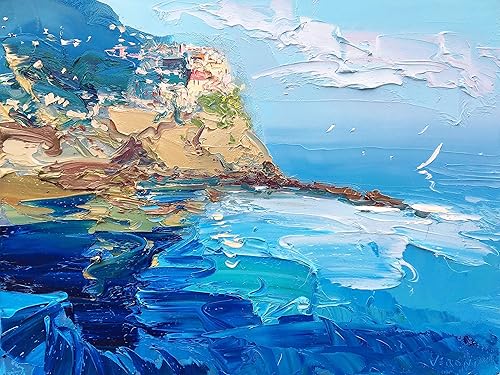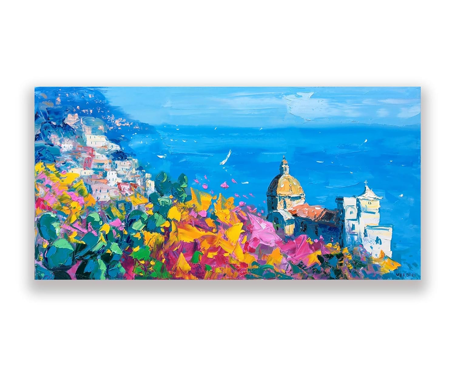 Amazon Com Positano Painting On Canvas Original Amalfi Coast Italy Seascape Large Wall Art Home Decor Handmade