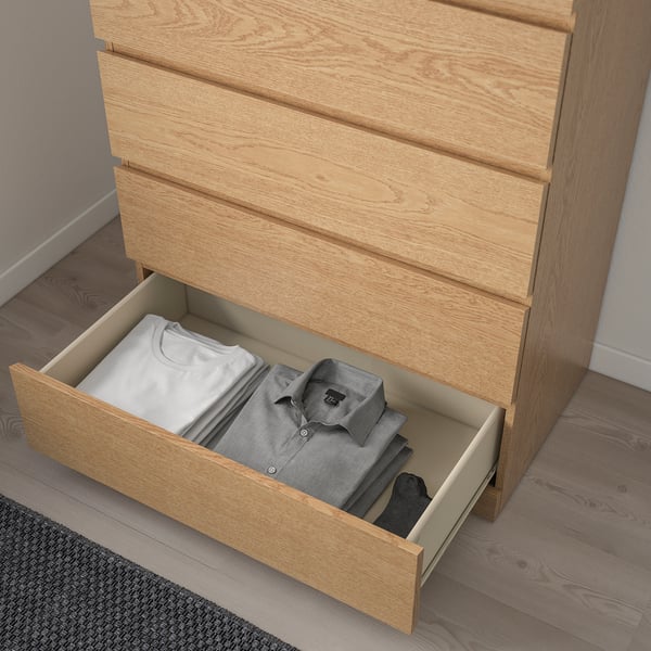 Malm 6 Drawer Dresser White Stained Oak Veneer 63x30 3 4 Ikea