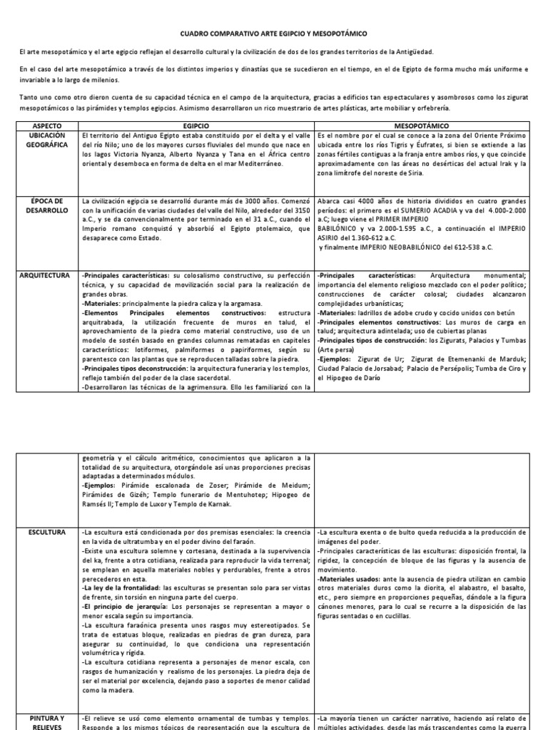 Cuadro Comparativo Arte Egipcio Y Mesopotamico Mesopotamia Antiguo Egipto
