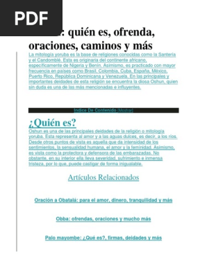 Oshun Duena Y Senora De Las Aguas Dulces Pdf Descargar Libre