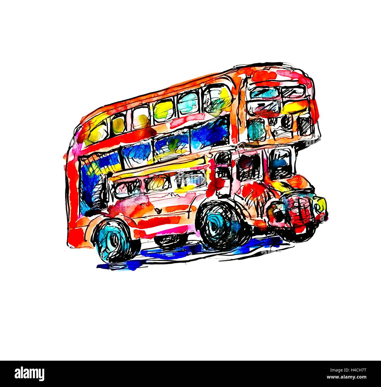 Doodle Watercolor Sketch Painting Of London Symbol Red Bus Stock Vector Image Art Alamy