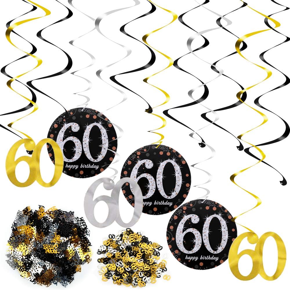 60th Decoraciones De Fiesta De Cumpleanos De Kit Para Hombres Mujeres Negro Oro Feliz Cumpleanos Banner Colgante Remolinos Circulo Puntos Decoracion Decoraciones Diy De Fiestas Aliexpress