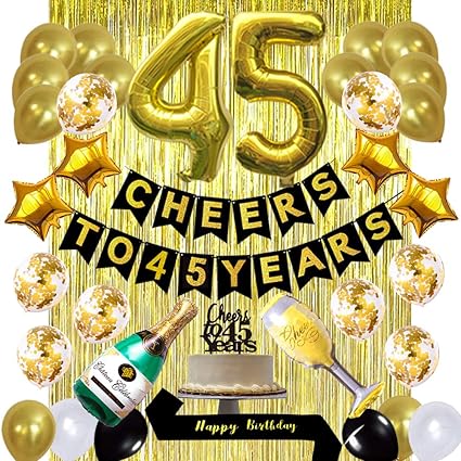 Amazon Com Kit De Decoracion De Oro Para 45 Cumpleanos Globos Y Decoracion Para Tartas De 45 Anos Cinta De Feliz Cumpleanos Cortinas De Flecos De Papel De Aluminio Dorado Para Cumpleanos