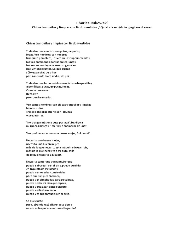 Charles Bukowski Chicas Tranquilas Y Limpias Con Lindos Vestidos Entretenimiento General Ocio