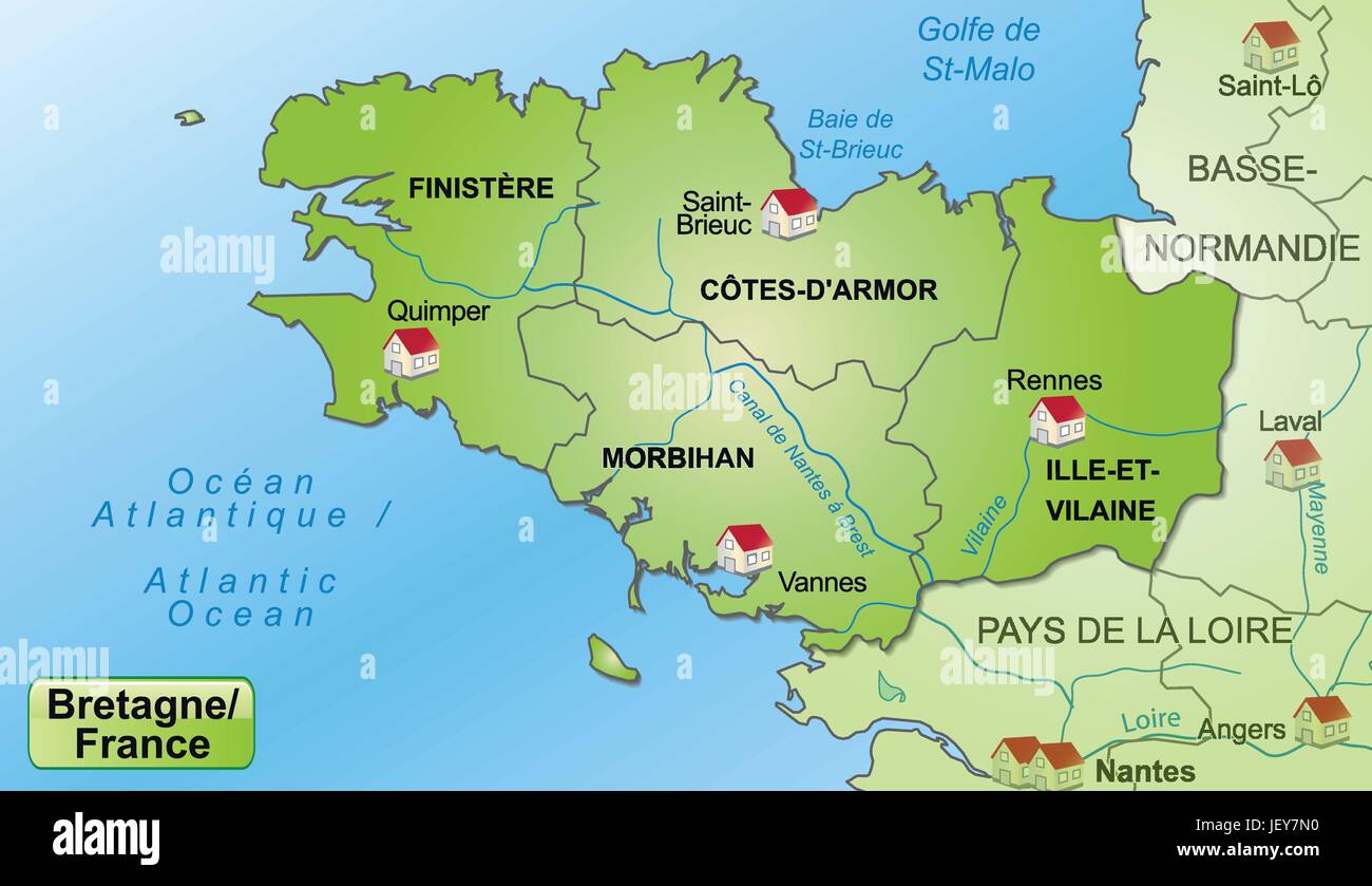 Mapa de Bretagne Mapa y plano detallado de Bretagne ¿Buscas el mapa o el plano de Bretagne y sus alrededores?. La Bretaña Francesa es una de esas regiones que enamoran al primer vistazo El país galo es prodigo en maravillas (uno de los mejores destinos viajeros del mundo sin duda alguna) y esta esquina. La Bretaña se divide en cuatro departamentos Ille y Vilaine, Morbihan, Finisterre y Costas de Armor Hay una buena colección de pueblos para pasar varios días recorriendo la región pero si dispones de tiempo puedes extender tu viaje hacia Normandía o El Valle del Loira.