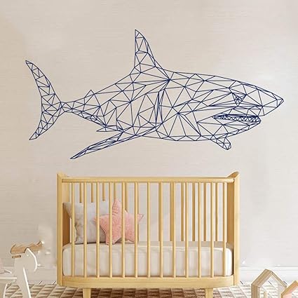 Ktto Geometrica Tiburon Ballena Pez Oceano Etiqueta De La Pared Bebe Vivero Habitacion De Los Ninos Grandes Dibujos Animados Tiburon Pez Bajo El Mar Animal Etiqueta De La Pared Vinilo 112x56 Cm