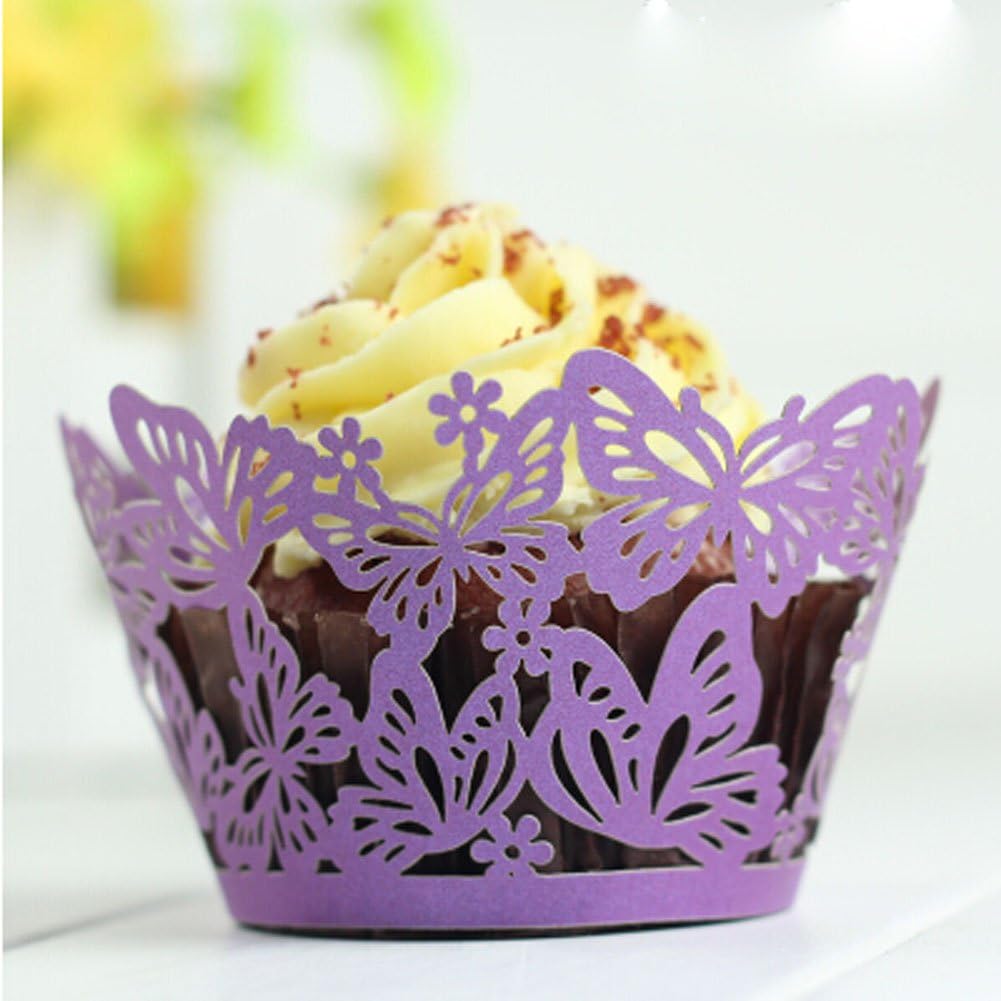 Amazon Com Pigeon Fleet Delicate Purple Butterfly Hollow Wedding Cupcake Decor Disposable Muffin Cups 24 Packs Home Kitchen