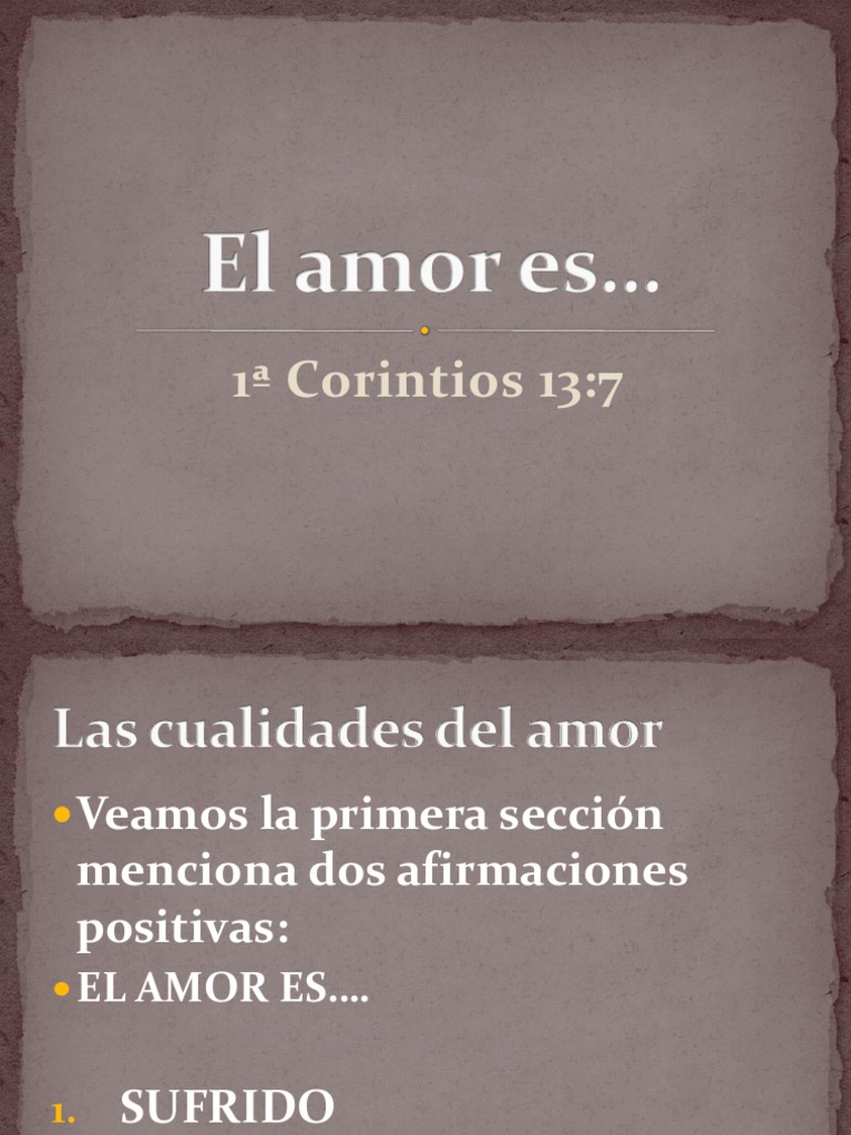 1 Corintios En el día de hoy llegamos a este maravilloso capítulo 13 de la Primera Epístola a los Corintios Y se encuentra en esta sección, que hemos denominado la “Concesión de los Dones” Recordemos las palabras del apóstol Pablo en el versículo 31 “Procurad, pues, los dones mejores. Ni tampoco tiene el marido potestad sobre su. 1 Corintios 7 todo lo sufre, todo lo cree, todo lo espera, todo lo soporta 8 El amor nunca deja de ser;.