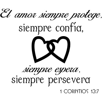 Amazon Com 1st Corinthians Wall Decal 1 Corintios 13 7 El Amor Siempre Protege Confia Espera Persevera A Spanish Bible Verse Wall Decals In Vinyl Wall Decal Christian Wall Decor White Home Kitchen