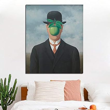 Wojinbao Sin Marco Magritte El Hijo Del Hombre Pintura Al Oleo Surrealismo Carteles E Impresiones Arte De La Pared Cuadros Decorativos Pintura Decoracion Para El Hogar Para El Dormitorio Amazon Es Hogar