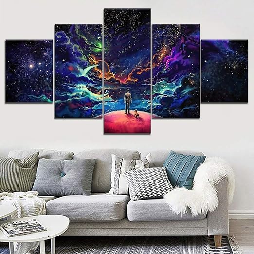 Rrfhgh 5 Piezas Sobre Lienzo 5 Piezas Sobre Lienzo Arte Colorido Hombre Perro Nubes Espaciales Cuadros Decorativos Modernos Sobre Lienzo Wall Art Para Decoraciones Para La Casa Decoracion De La Pared Amazon Es