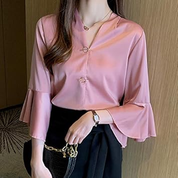 Rvxzv Silcsqb Moda Mujer Blusas De Seda Elegante Mujer Blusa De Saten Camisas Tallas Grandes Mujer Blusas De Manga De Mariposa Ol V Cuello Camisa Xxl Amazon Es Deportes Y Aire Libre
