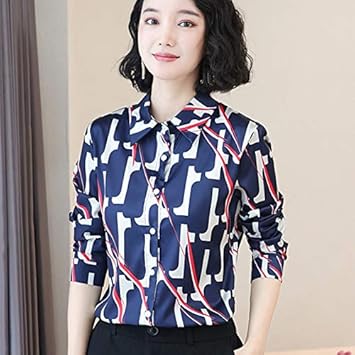 Xcxdx Elegante Camisa Azul Marino Estampada Para Mujer Blusa De Manga Larga Con Lazo De Seda Top Casual De Primavera Amazon Es Deportes Y Aire Libre