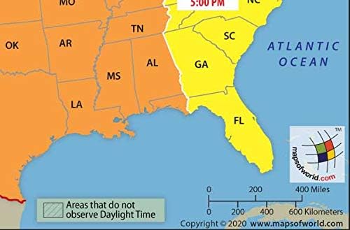 Fiji DST ends on January 17, 21 See Oceania Time Zones Map USA, Canada, Cuba, Bahamas, Bermuda, Saint Pierre and Miquelon (Fr) will start Daylight Saving Time on March 14, 21 See USA Time Zones map See Caribbean / Central America Time Zones map Europe starts Summer Time (Daylight Saving Time) on March 28, 21 See Europe Time Zone Map. Colorful yet informative map Combined with a detailed political map of the world, contrasting colors are used to accurately depict the different time zones, both on land and in the oceans Includes an additional map showing countries/states that adopt daylight saving hours Scale 130,000,000. USA Time Zone Map with Cities and States live clock US time now Below is a time zone map of United States with cities and states and with real live clock The red lines divide the country in its time zones Hawaii and most of Arizona do not follow daylight saving time.