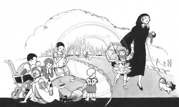 Park Life In The Park Art Deco Illustration Print Black Etsy
