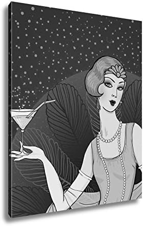 Amazon Com Ashley Canvas Flapper Girl Retro Party Invitation Design Art Deco Women With Glass Wall Art Home Decor Ready To Hang Black White x16 Ag Posters Prints
