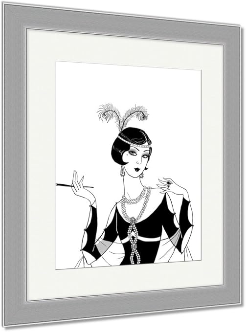 Amazon Com Ashley Framed Prints Flapper Girl Retro Party Invitation Design Art Deco Women With Cigarette Wall Art Home Decoration Black White 40x34 Frame Size Silver Frame Ag Posters Prints