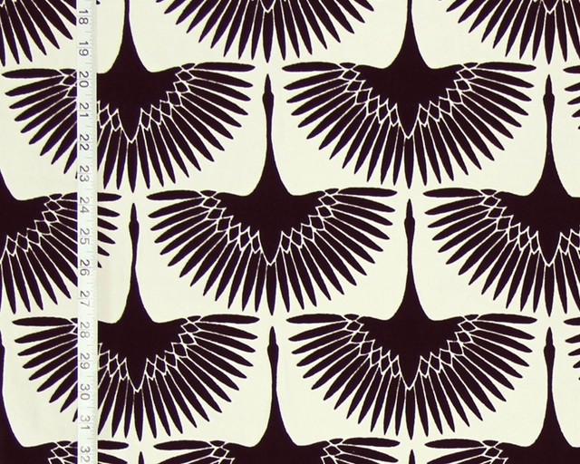Art Deco Fabric Egyptian Bird Lotus Black White Egret Goose Contemporary Drapery Fabric By Brick House Fabrics