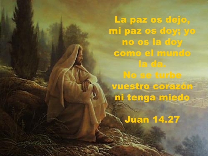 No os la doy como la da el mundo No se turbe vuestro corazón ni se acobarde Pero, ¿ en que consiste la paz ?. "La paz os dejo, mi paz os doy" Juan 14 27 Sermones Nuestro Señor estaba cerca de Su muerte, a punto de partir de este mundo, y de subir a Su Padre;. Juan 1427(RVR1960) 27 La paz os dejo, mi paz os doy;.