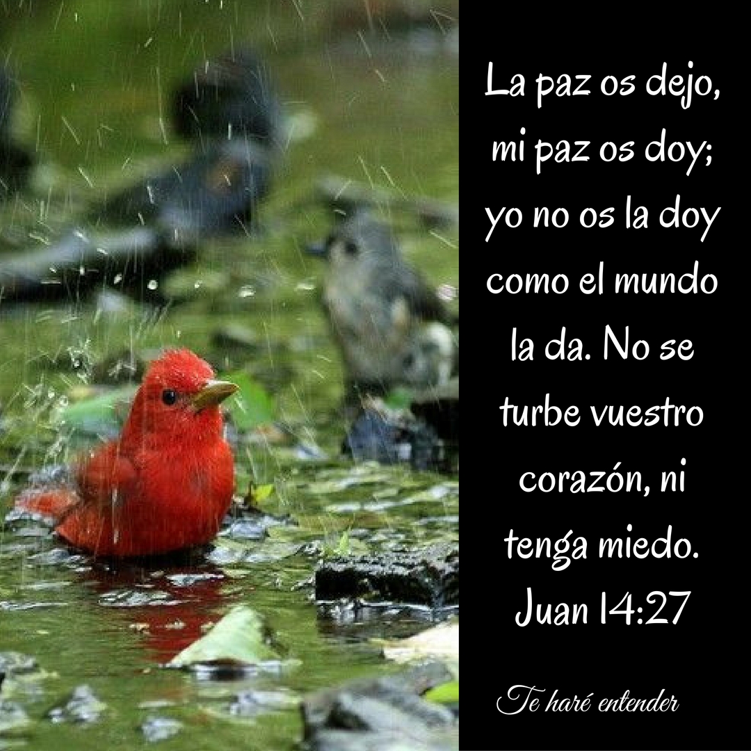 Entonces, necesita iniciar un caminar diario de oración y estudio personal de la Biblia Si usted nunca ha aceptado a Jesucristo como Salvador, pero ha comprendido Su realidad y el Fin de los Tiempos que se. "La paz os dejo, mi paz os doy" Juan 14 27 Sermones Nuestro Señor estaba cerca de Su muerte, a punto de partir de este mundo, y de subir a Su Padre;. Yo no os la doy como el mundo la da No se turbe vuestro corazón, ni tenga miedo Juan 1414;.
