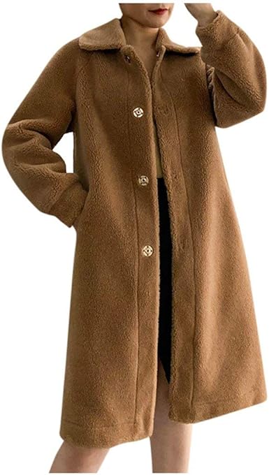 Polp Abrigo De Lana Mujer Invierno Largos Suelto Abrigos Mujer Rebajas Elegantes Tallas Grandes Calido Chaquetas De Felpa Con Boton Solapa Cuello Outerwear Amazon Es Ropa Y Accesorios