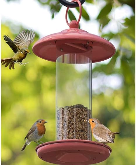 Amazon Com Funpeny Comedero Colgante Para Pajaros Y Pajaros Diseno Panoramico Color Rojo Jardin Y Exteriores